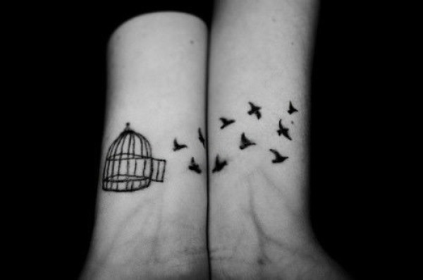 女生双臂鸟笼纹身图片_女生纹身图案大全_纹身图吧