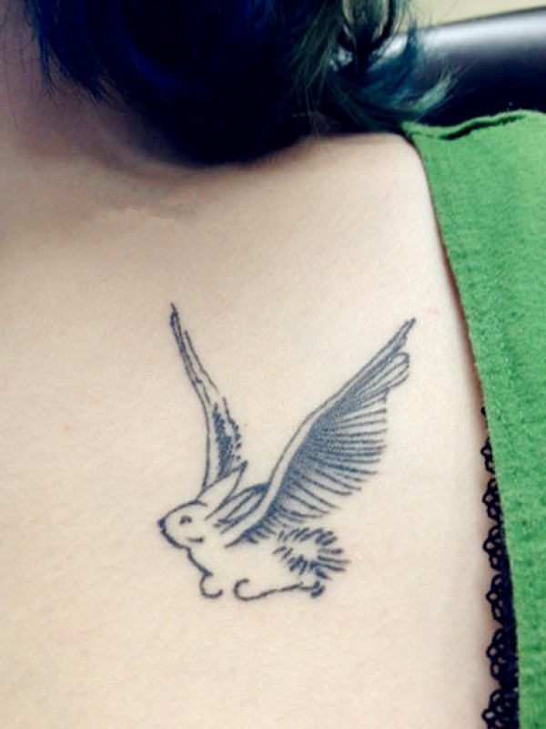 女生胸前飞翔的玉兔可爱纹身_女生纹身图案大全_纹身图吧