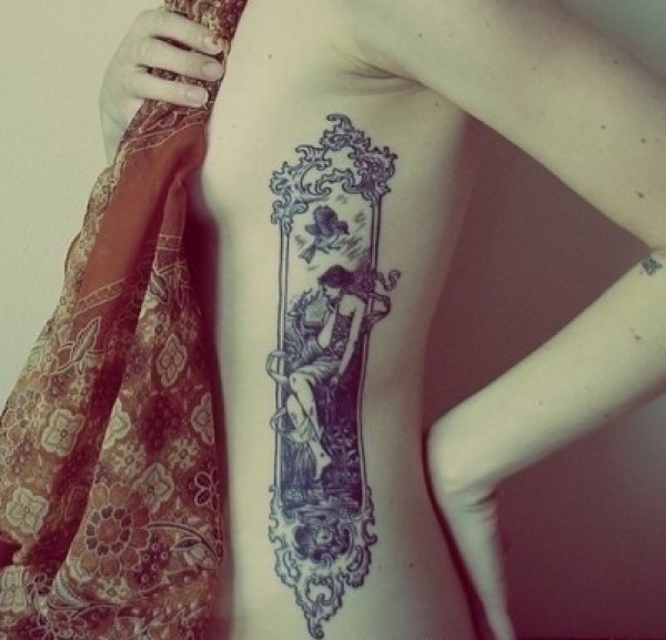女生腰部人物画像纹身_女生纹身图案大全_纹身图吧