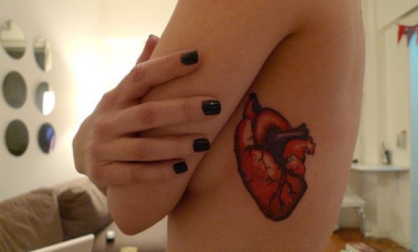 女生腰部彩色心脏纹身_女生纹身图案大全_纹身图吧