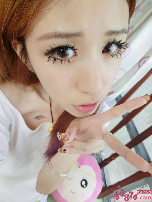 电眼美女胸前彩色纸飞机刺青_女生纹身图案大全_纹身图吧