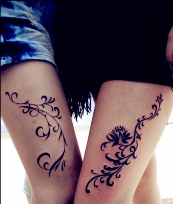 女生姐妹花腿部花藤蔓唯美优雅纹身_女生纹身图案大全_纹身图吧
