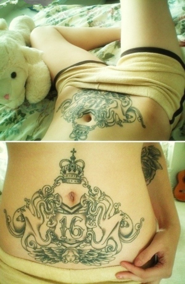 女生腹部皇冠纹身图案图片_女生纹身图案大全_纹身图吧