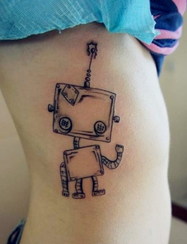 女生腰部小机器人纹身图案图片_女生纹身图案大全_纹身图吧