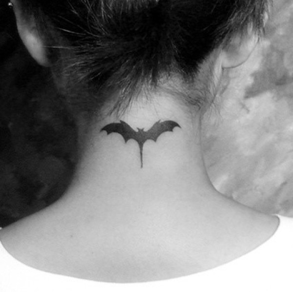 女生颈部蝙蝠纹身图案图片_女生纹身图案大全_纹身图吧
