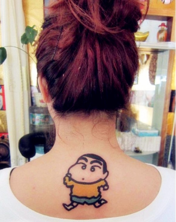 女生颈部蜡笔小新纹身图案图片_女生纹身图案大全_纹身图吧