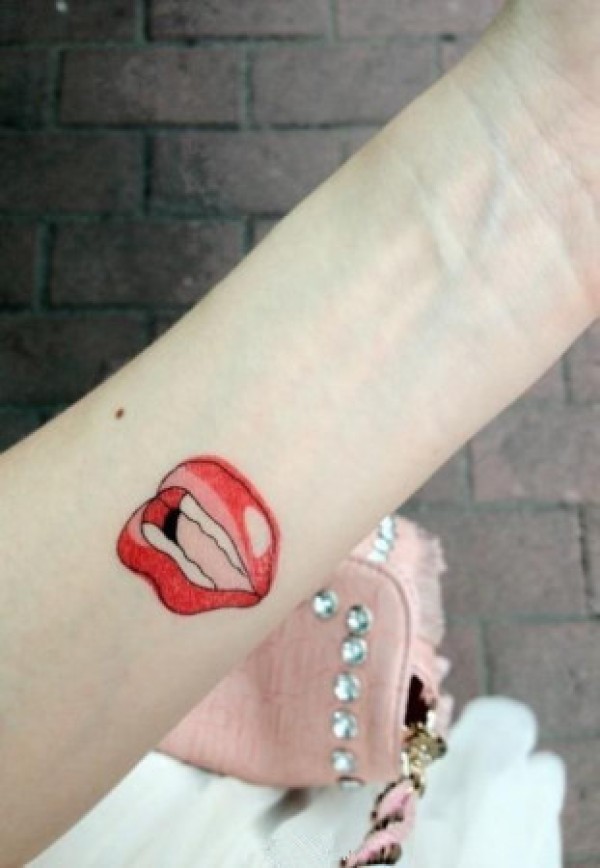 女生手臂红唇纹身图案图片_女生纹身图案大全_纹身图吧