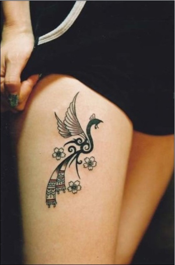 女生腿部高贵孔雀展翅纹身图案图片_女生纹身图案大全_纹身图吧