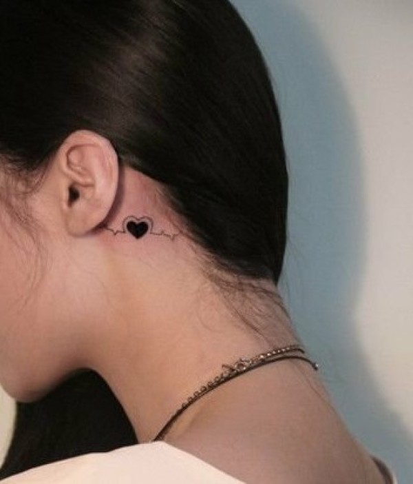 女生耳根后心形纹身图案图片_女生纹身图案大全_纹身图吧