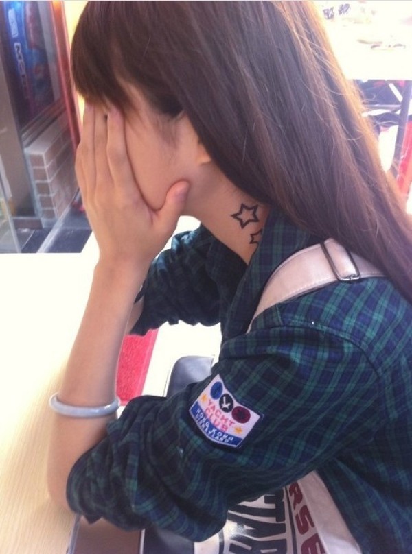 女生颈部星星纹身图案图片_女生纹身图案大全_纹身图吧