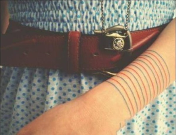 女生手臂唯美彩色线条时尚纹身图案图片_女生纹身图案大全_纹身图吧