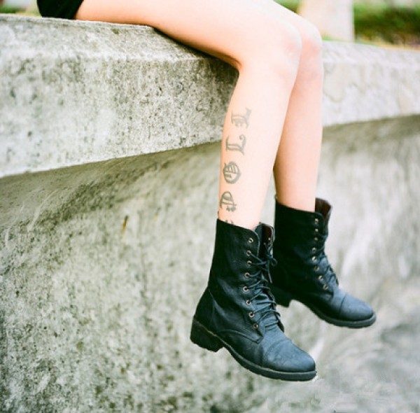 女生腿部个性字符时尚纹身图案图片_女生纹身图案大全_纹身图吧