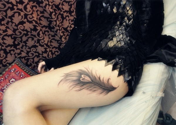 女生腿部羽毛纹身图案图片_女生纹身图案大全_纹身图吧