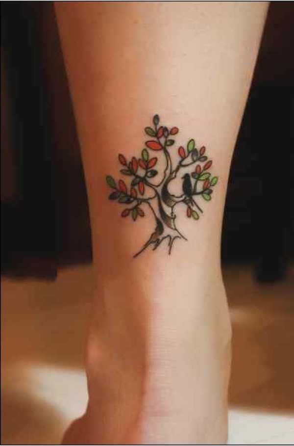 女生脚部彩色小树唯美纹身图案图片_女生纹身图案大全_纹身图吧