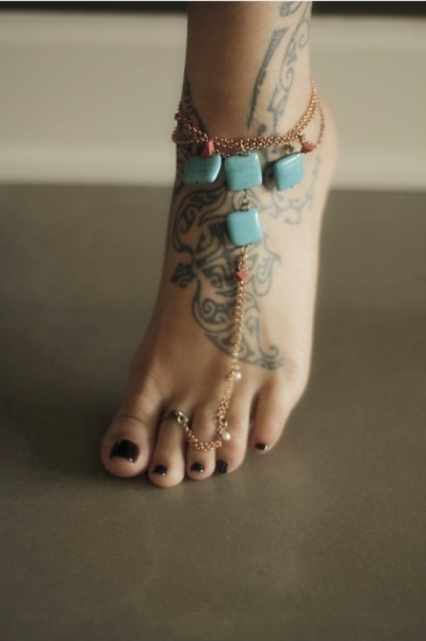 女生脚部黑色图腾欧美另类纹身图案图片_女生纹身图案大全_纹身图吧