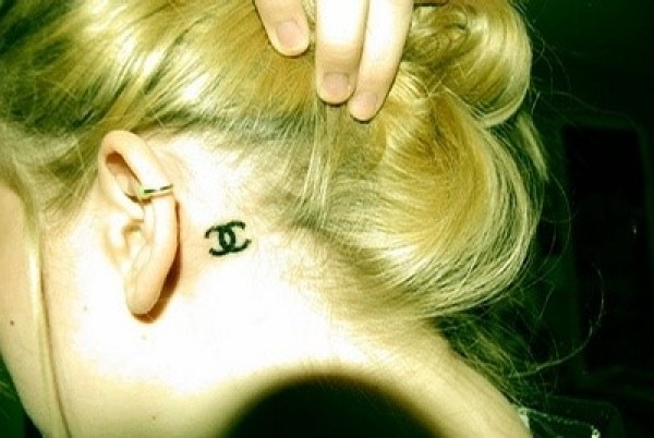 女生耳根后香奈儿纹身图案图片_女生纹身图案大全_纹身图吧