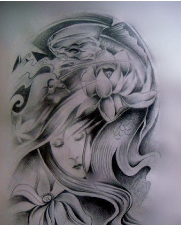 彩色半胛美女纹身_女生纹身图案大全_纹身图吧