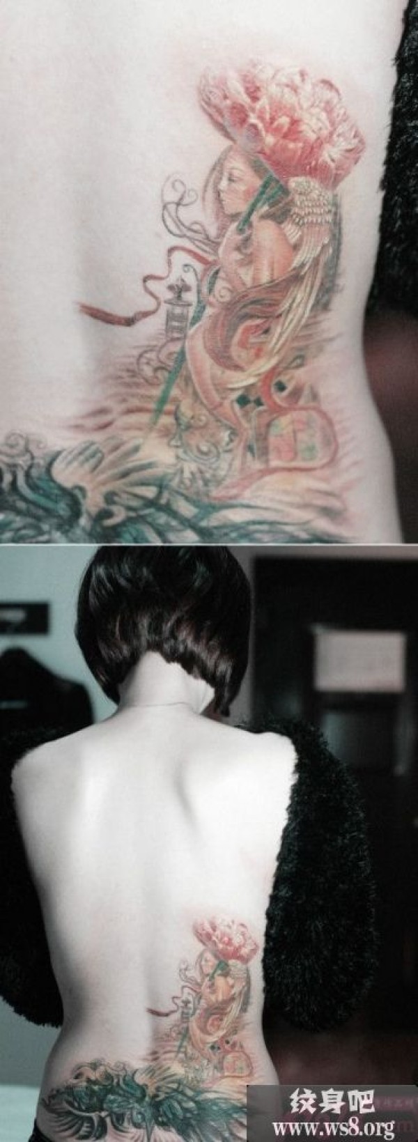 彩色半胛美女纹身_女生纹身图案大全_纹身图吧