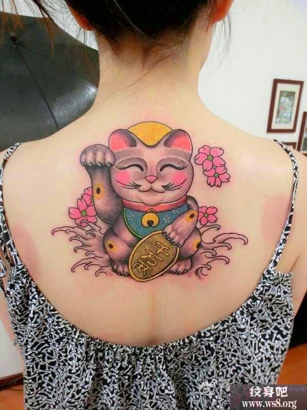喜气招财猫女生背部图案_女生纹身图案大全_纹身图吧