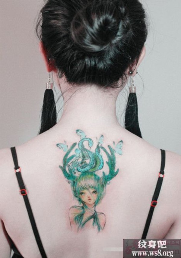 美女后背青色图腾图案_女生纹身图案大全_纹身图吧