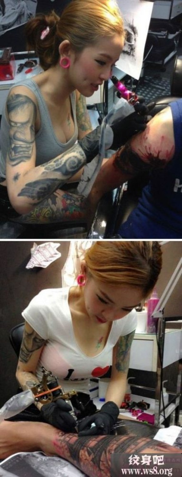 个性美女刺青师机械刺青现场图案_女生纹身图案大全_纹身图吧