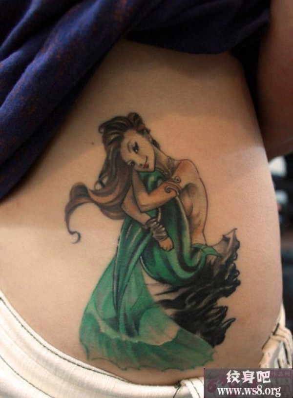 唯美性感美人鱼腰部纹身图案_女生纹身图案大全_纹身图吧