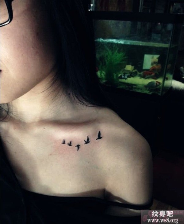 女生肩部唯美小鸟飞翔纹身图案_女生纹身图案大全_纹身图吧