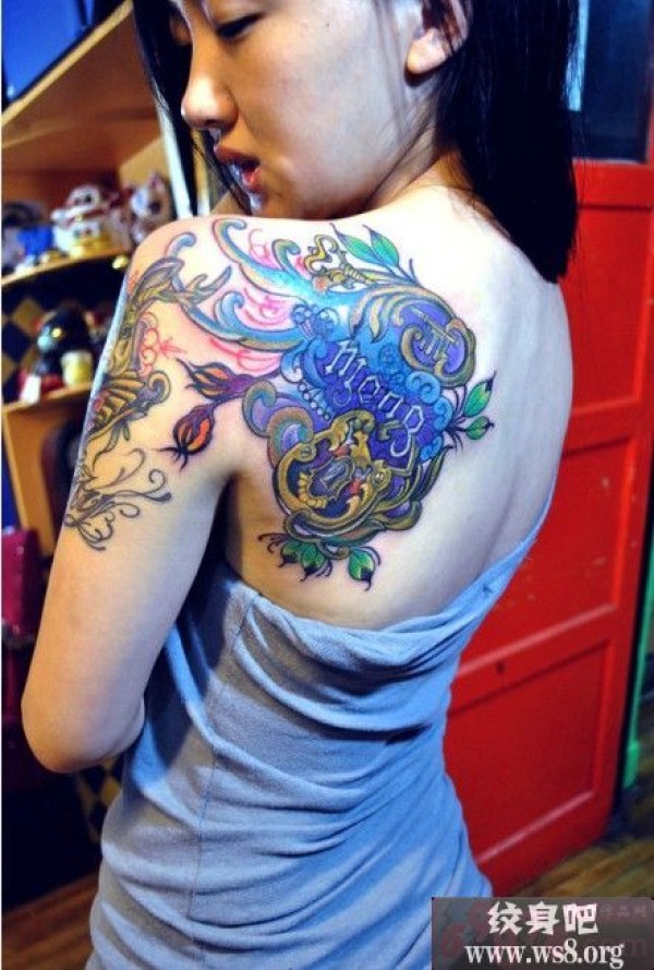 女生肩部重彩创意花纹身图案_女生纹身图案大全_纹身图吧