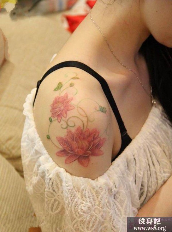 女生香肩花与花藤纹身图案_女生纹身图案大全_纹身图吧
