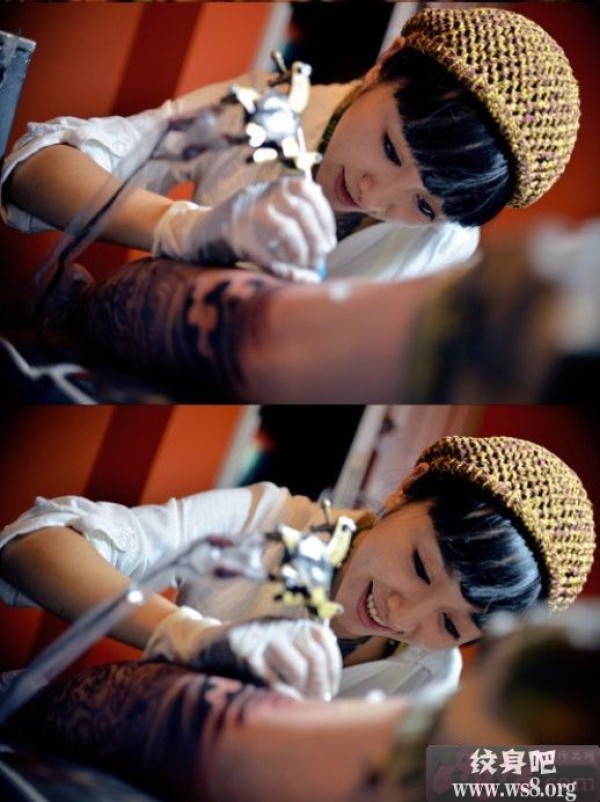 美女刺青师开心刺青创作过程图案_女生纹身图案大全_纹身图吧