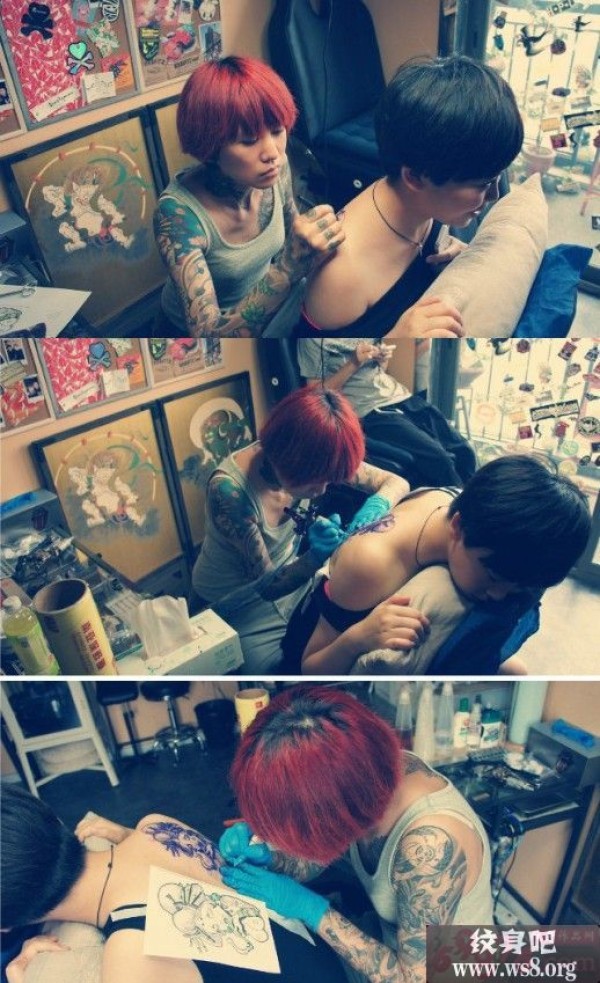 美女刺青师背部刺青现场图案_女生纹身图案大全_纹身图吧