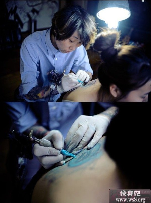 美女后背个性图案刺青现场图案_女生纹身图案大全_纹身图吧
