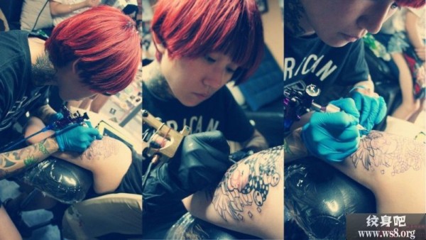 美女刺青师手臂团刺青现场图案_女生纹身图案大全_纹身图吧