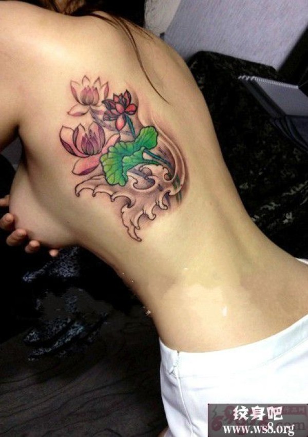 性感美背彩绘荷花刺青图案图案_女生纹身图案大全_纹身图吧