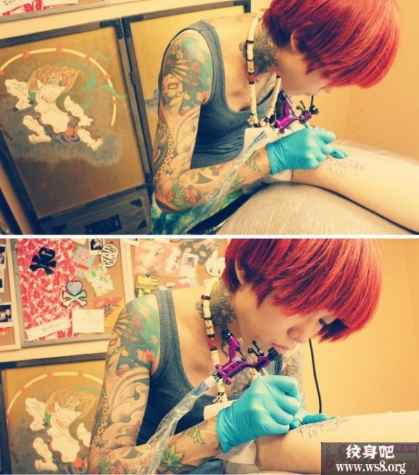 美女刺青师创作刺青现场图案_女生纹身图案大全_纹身图吧