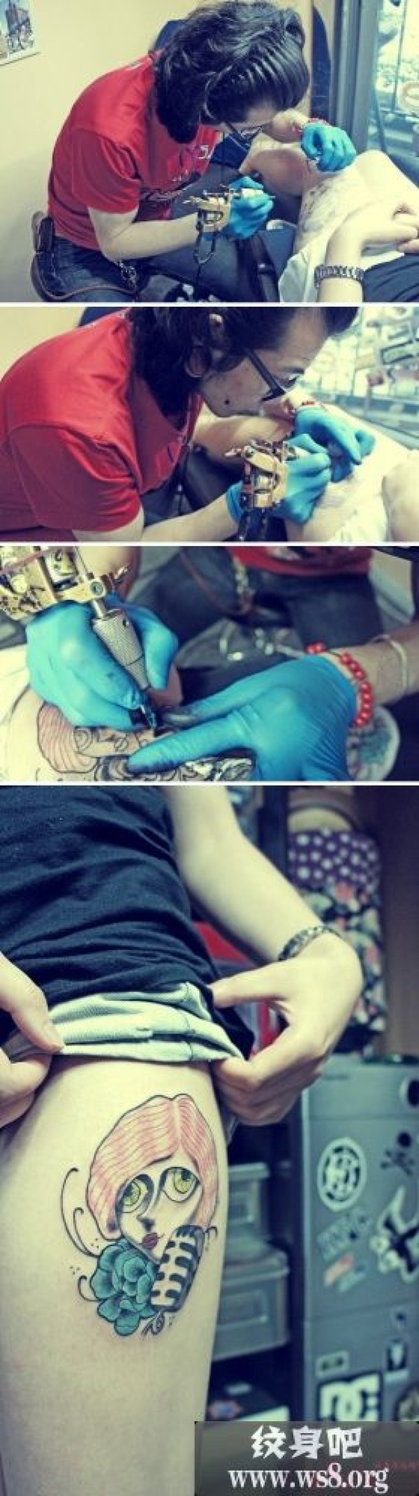 大腿女生头像创意刺青现场图案_女生纹身图案大全_纹身图吧