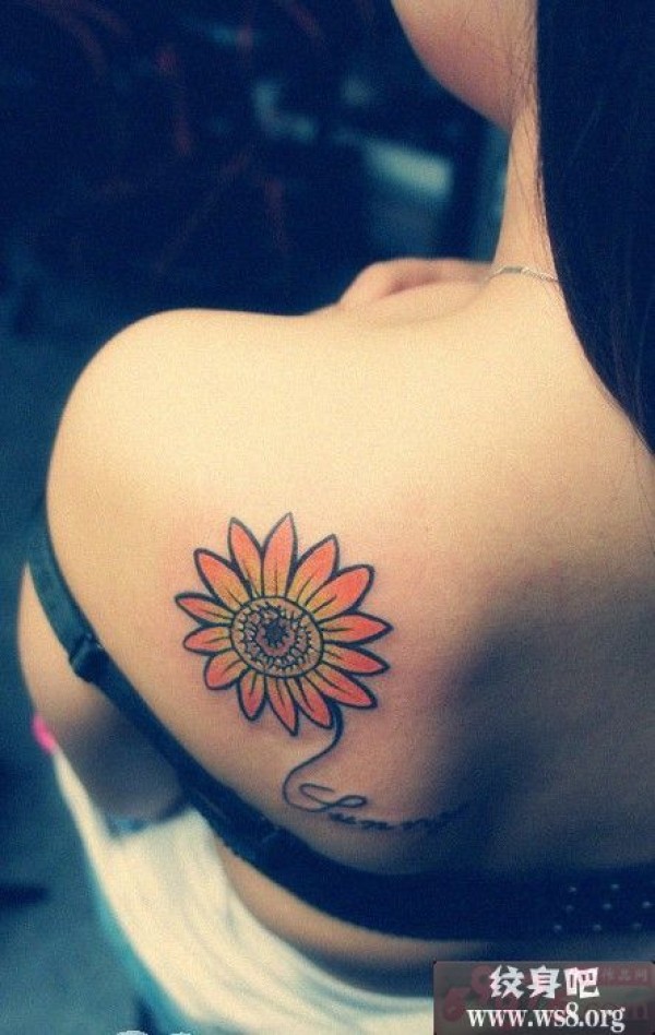 女生后肩向日葵清新纹身图案_女生纹身图案大全_纹身图吧