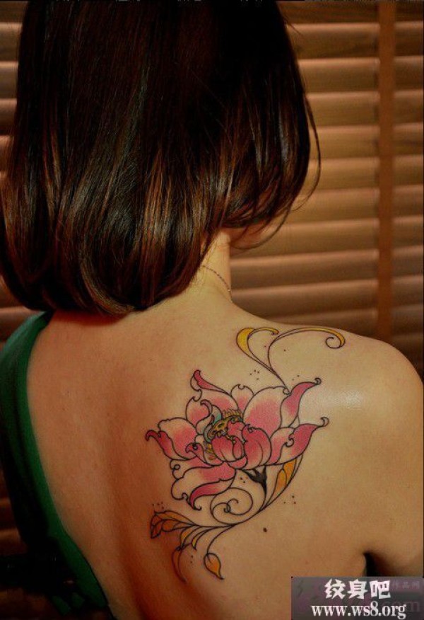 性感香肩莲花纹身图案_女生纹身图案大全_纹身图吧