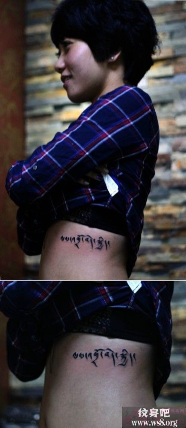 个性女生腰部藏文纹身图案_女生纹身图案大全_纹身图吧