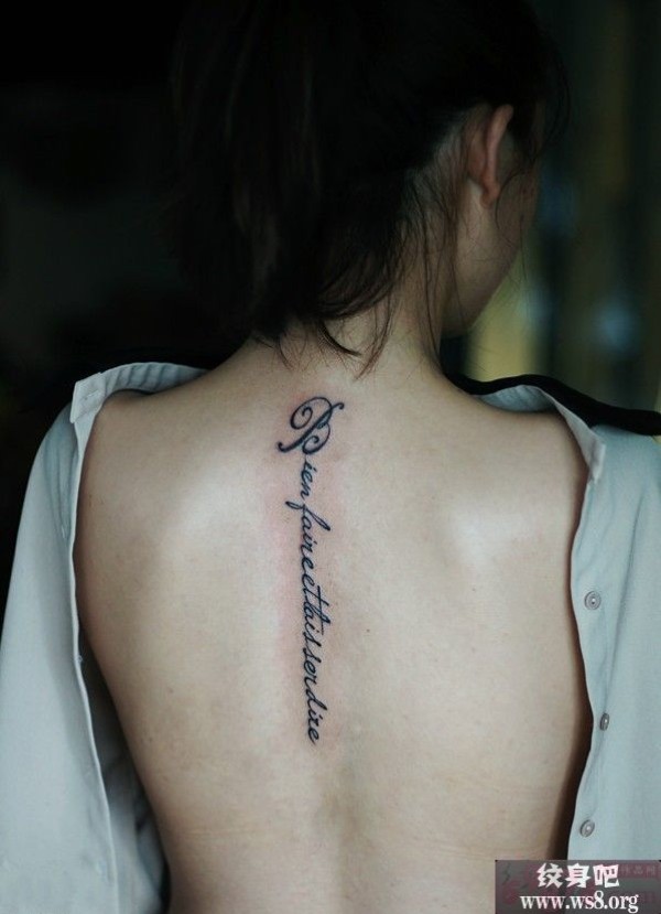 后背法文的女生纹身_女生纹身图案大全_纹身图吧