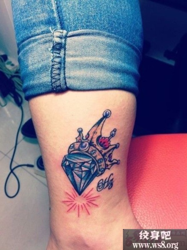 女生小腿钻石皇冠纹身图案图案_女生纹身图案大全_纹身图吧