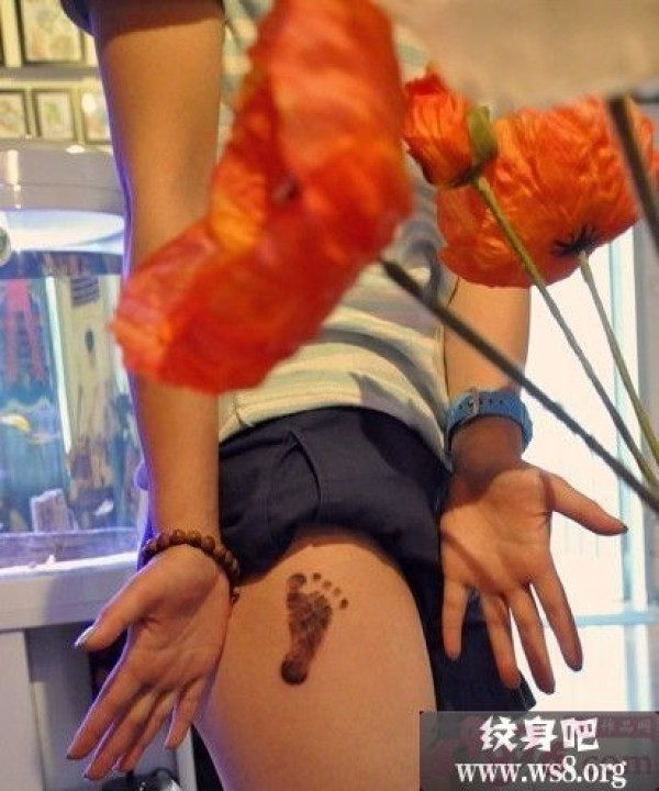 个性美女腿上可爱脚印纹身图案_女生纹身图案大全_纹身图吧