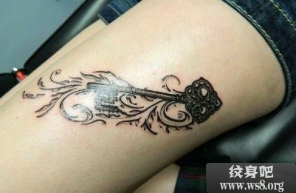 性感大腿纹理钥匙图案_女生纹身图案大全_纹身图吧