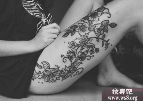 美女腿部性感花纹身图案_女生纹身图案大全_纹身图吧
