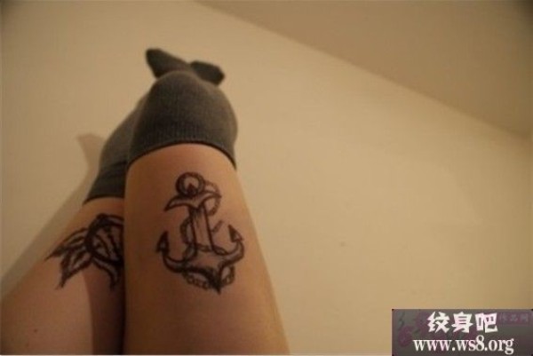 女生腿部个性船锚纹身图案_女生纹身图案大全_纹身图吧