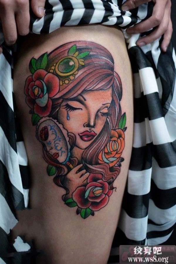 大腿高清落泪美女图图案_女生纹身图案大全_纹身图吧