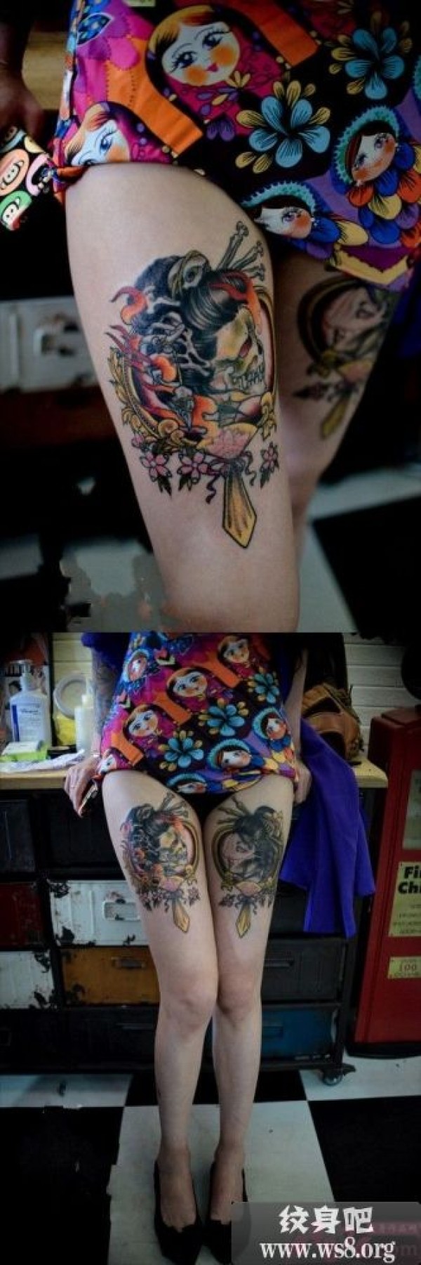 狂野美女双腿阴阳桃花扇图案_女生纹身图案大全_纹身图吧