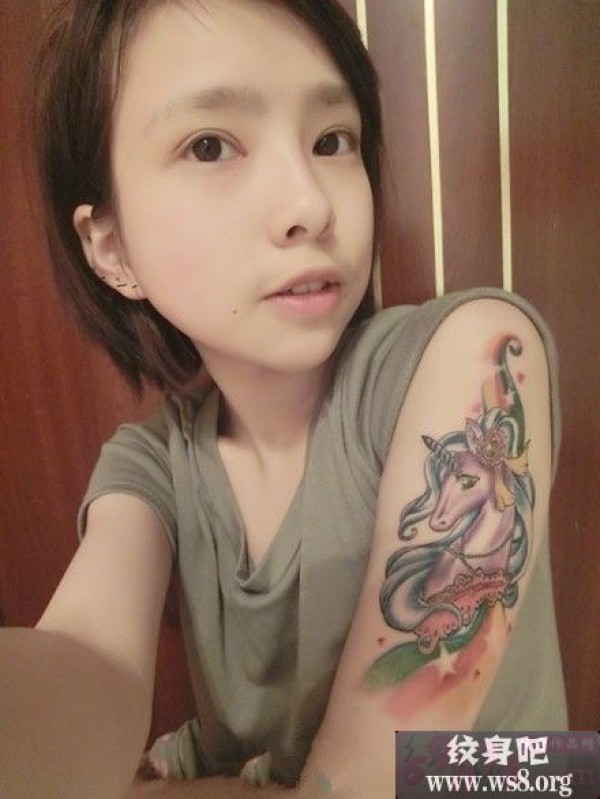小美女手臂彩色独角兽纹身图案_女生纹身图案大全_纹身图吧