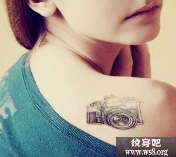 女生肩上唯美照相机纹身图案_女生纹身图案大全_纹身图吧