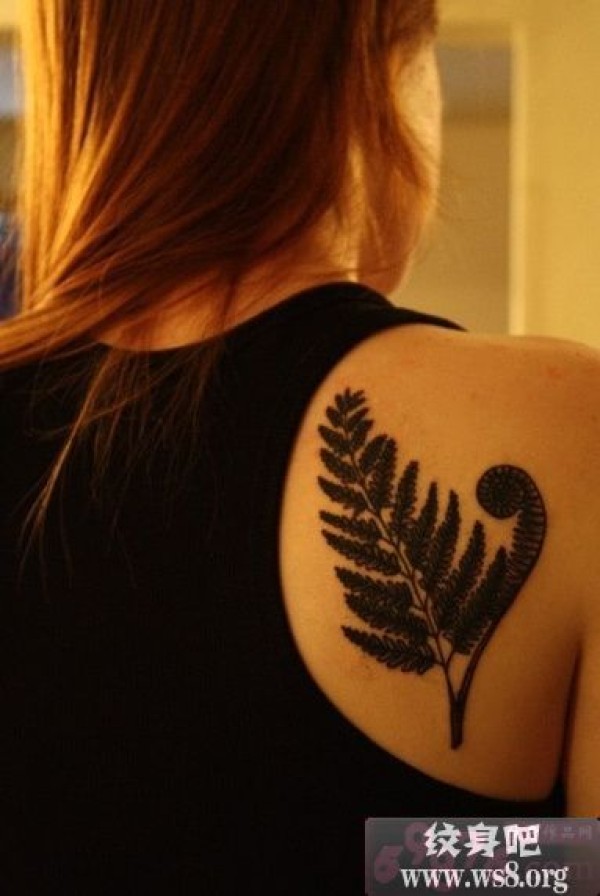 女生后肩草叶子刺青图案_女生纹身图案大全_纹身图吧